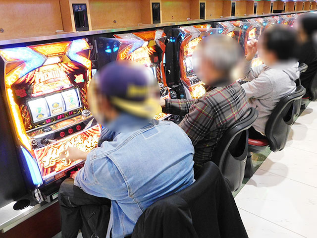 全台プラスとはならなかったが、650番台で+2,444枚が放出されている。さらに両隣の『ニューパルサーSPⅢ』『アイムジャグラーEX』も活気を見せており、こちらも5台並びの好調スポットとなっていた。
