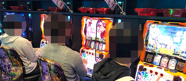2021年の締めくくりとあって、ホール内では様々な機種から眩い光景が飛び出し、あっという間に大盛り上がりとなった。『SLOT魔法少女まどか☆マギカ2』や『パチスロコードギアス 反逆のルルーシュ3』、『バーサス』などの人気機種が特に目立っていたが、その中でも特に取材班の目を引いたのが、以下に紹介する『押忍!サラリーマン番長2』だ。