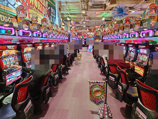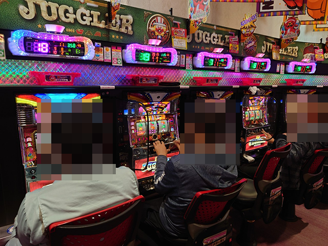 「マイジャグラーⅣ」や「マイジャグラーⅢ」などが支持されており、随所で楽しそうな場面を目にした。