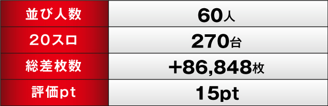 パチスロ全体でも、トータルの差枚数は+86,848枚を記録。評価ptも15ptを獲得し、久々の「ヒーローズレポート」を見事な勝利で飾ったのであった。