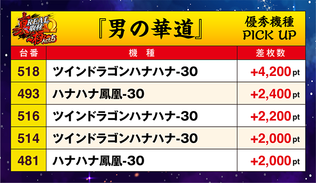 +4,000pt超えの台があった「ツインドラゴンハナハナ-30」。