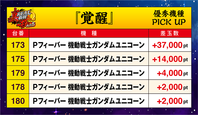 複数台が+2,000pt以上を記録するなど、全体的に盛り上がっていた印象だ。
