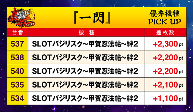 「SLOTバジリスク~甲賀忍法帖~絆2」の4台が+2,000ptオーバー!!