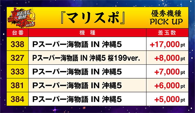 新台の「Pスーパー海物語 IN 沖縄5 桜199ver.」でも、プレイヤーが活躍をみせた。