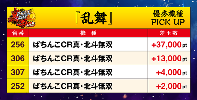 「ぱちんこCR真・北斗無双」の256番台が+37,000pt!