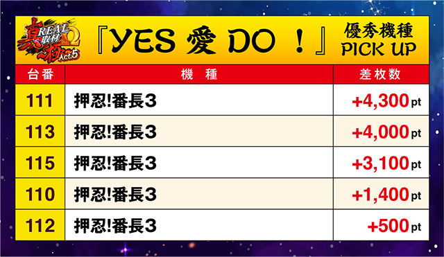 複数台がプラスptとなり、なかには+5,000ptを上回る台もあった。