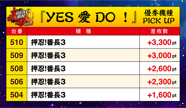 +2,000pt超がズラリとならび、機種トータルでみてもプラスを記録した。