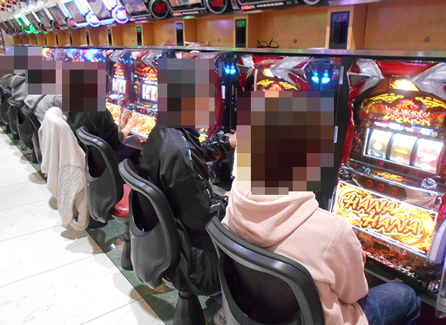 ホールには4機種のハナハナシリーズがあり、合計で80台が設置されている。