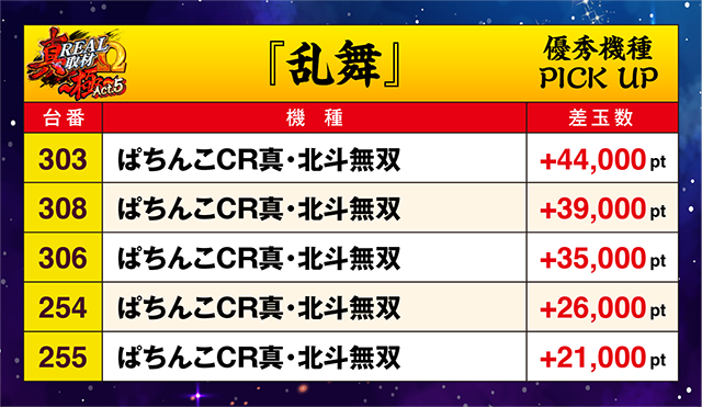「ぱちんこCR真・北斗無双」の303番台が+40,000ptオーバー!!