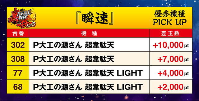 「P大工の源さん 超韋駄天」では302番台が+10,000pt!