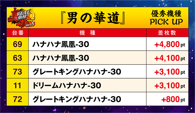「ハナハナ鳳凰-30」の63番台と69番台が+4,000ptオーバー!!