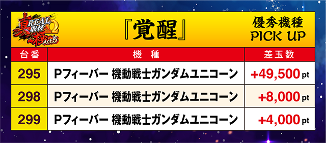 6台設置の「Pフィーバー 機動戦士ガンダムユニコーン」は3台がプラスpt!