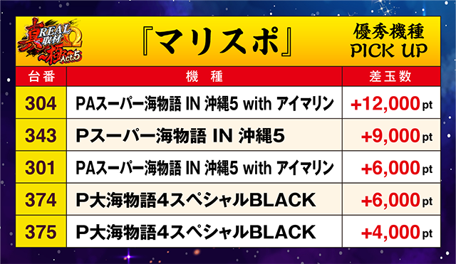 遊パチだけでなく、「Pスーパー海物語 IN 沖縄5」や「P大海物語4スペシャルBLACK」にも好結果となる台が複数あった。