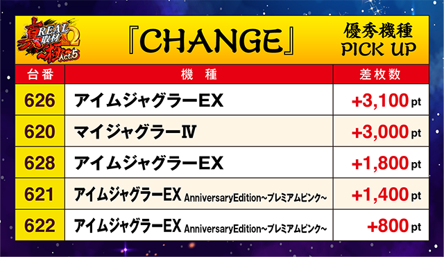 「アイムジャグラーEX」と「マイジャグラーⅣ」に+3,000pt超えがあるなど、さまざまな機種で活躍がみられた。