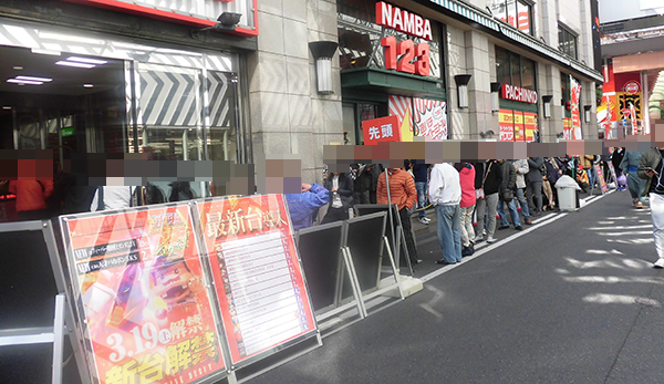 朝イチからおよそ60人のプレイヤーが入り口の前に列を作っており、開店を待つ表情からはホールへの期待が伝わってきた。