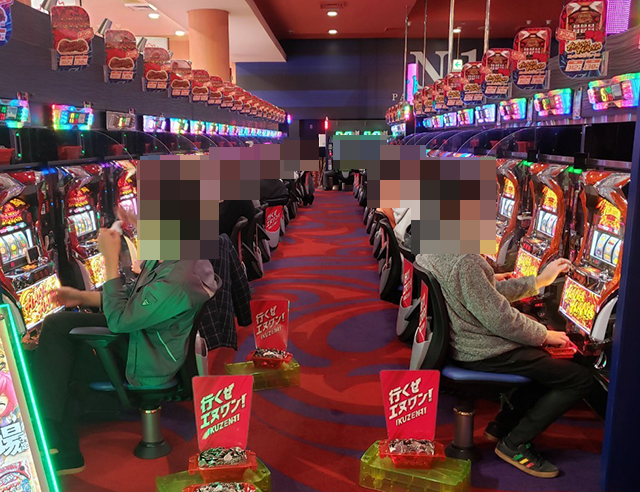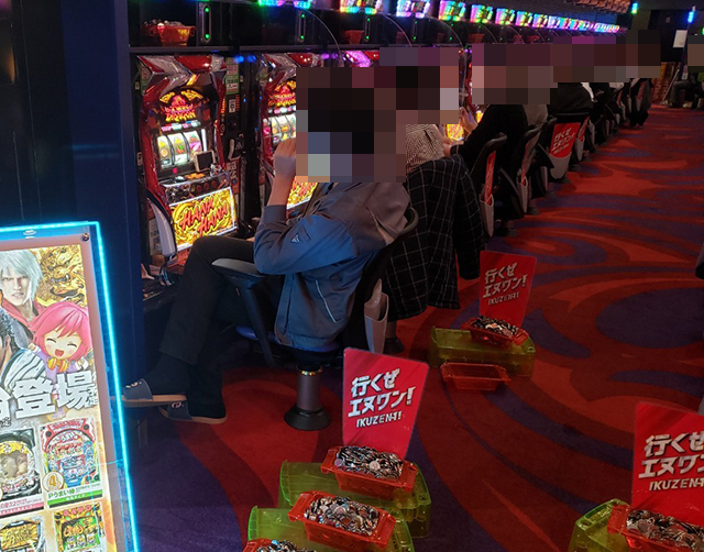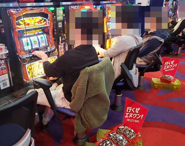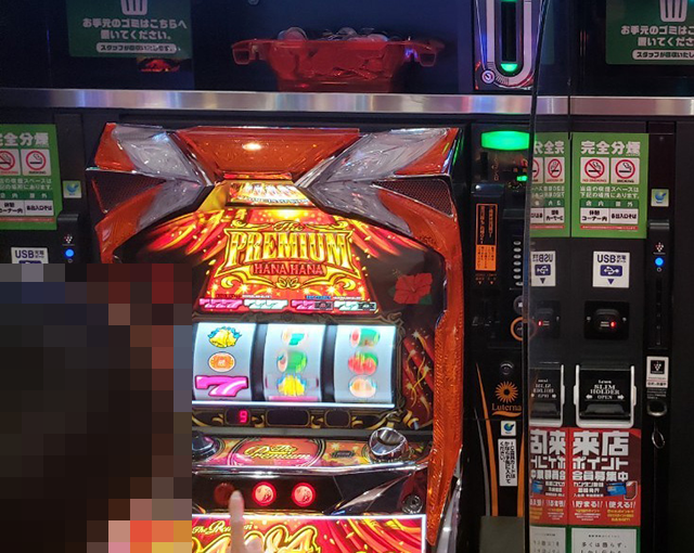 14時を過ぎた頃には、設置されている13台がすべて埋まっていた「プレミアムハナハナ-30」。ハナハナシリーズ全体がにぎわっているなかでも、ひときわ大きな活気に包まれていた。