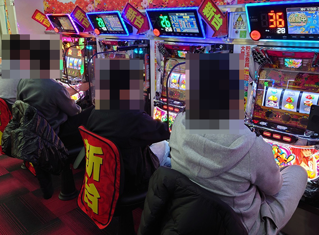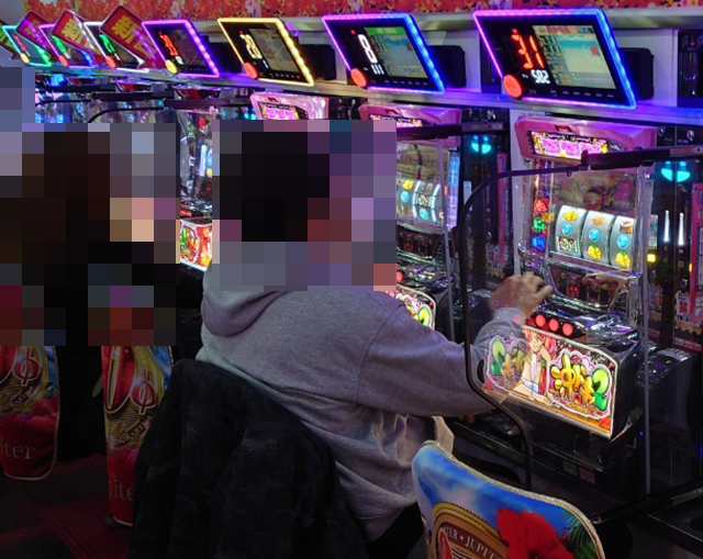 沖スロコーナーでもっとも多い8台が設置されており、取材時には3台が稼働していた。