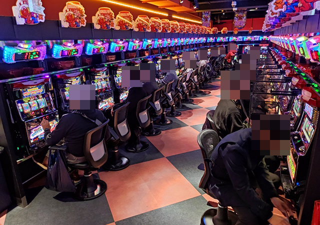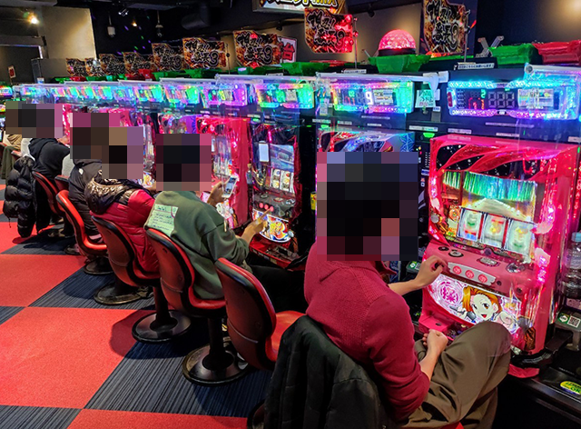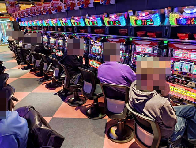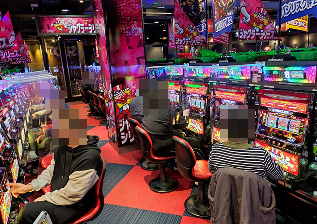 空き台が少なく、楽しげなプレイヤーがならんでいた「アイムジャグラーEX」が大にぎわい!