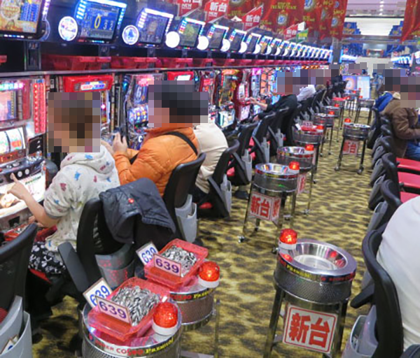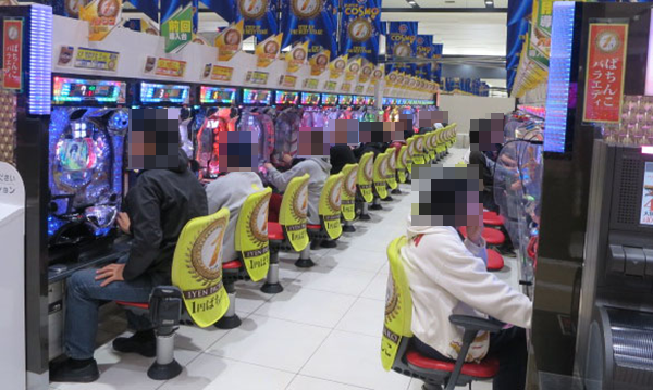 夕方頃の4円パチンコでは「ぱちんこCR真・北斗無双」がフル稼動。機種の性能を最大限に引き出しているようなプレイヤーが多く、コーナーのなかでも目立つシマとなっていた。