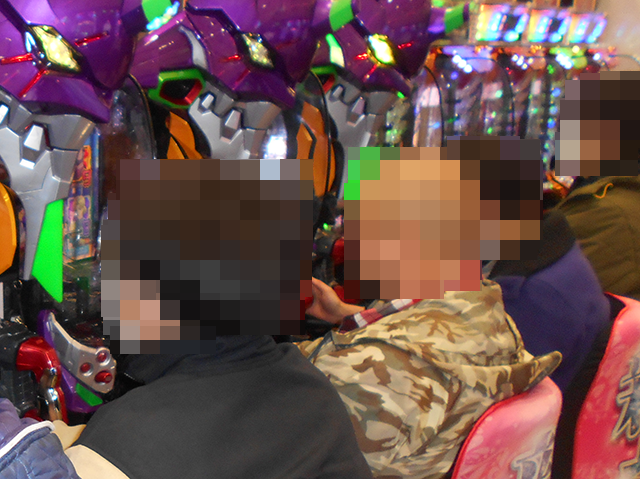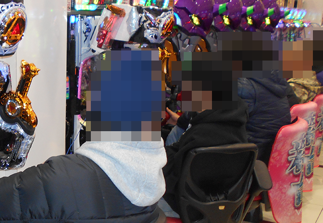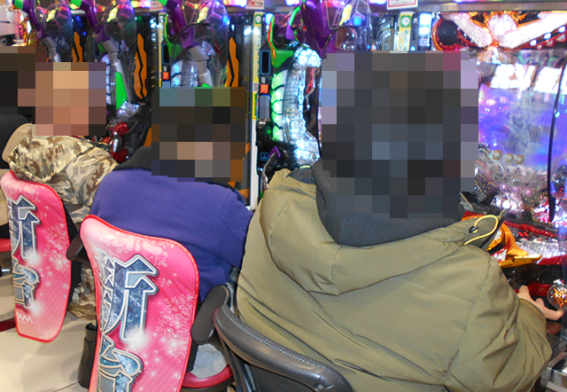 イキイキとしたプレイヤーが目立っていた「ぱちんこCR真・北斗無双」。華やかなシーンをみているうちに、空き台を確保して一緒に遊技をおこないたいと思った。