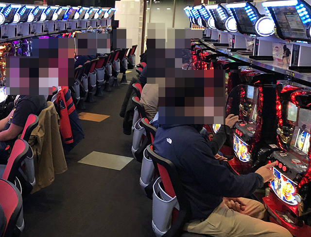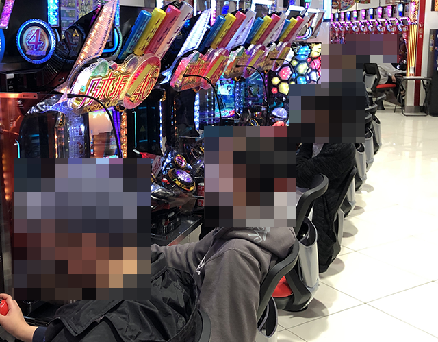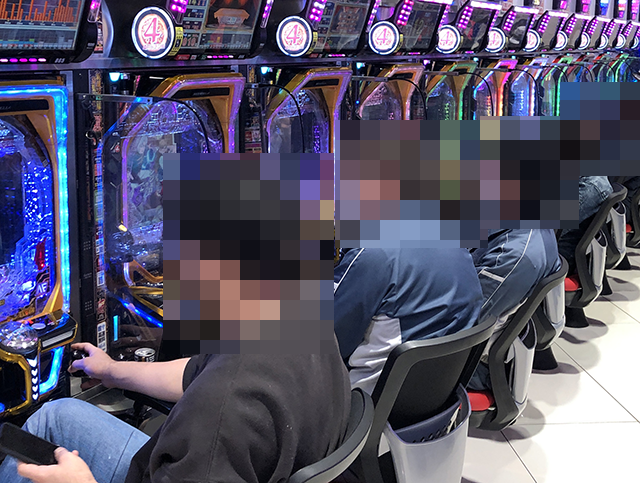 取材時には7台中5台が埋まっており、プレイヤーたちは笑顔で遊技中。