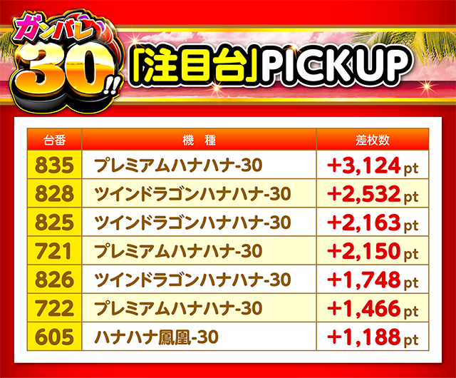 「プレミアムハナハナ-30」に+2,000pt超が多数!!