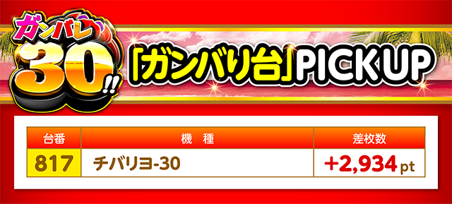 「チバリヨ-30」では、817番台が+2,934ptを記録!!
