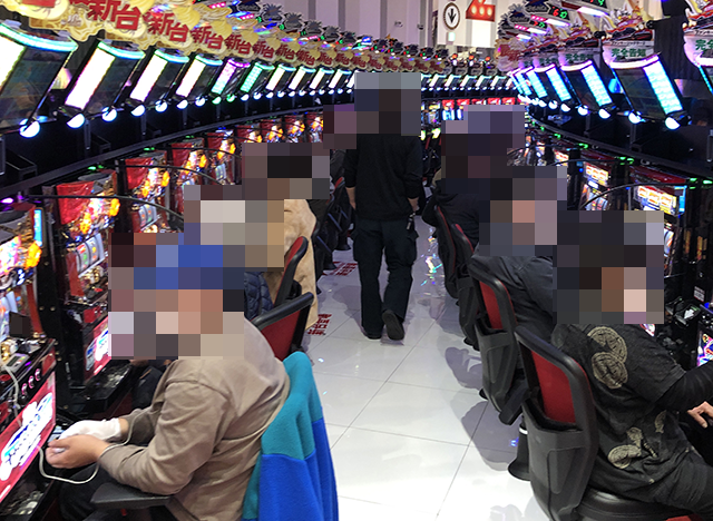 取材時は6割が稼働し、どの台でもプレイヤーは楽しそうな様子。機種が持つ魅力を堪能しているためか、笑みを浮かべていたことも覚えている。