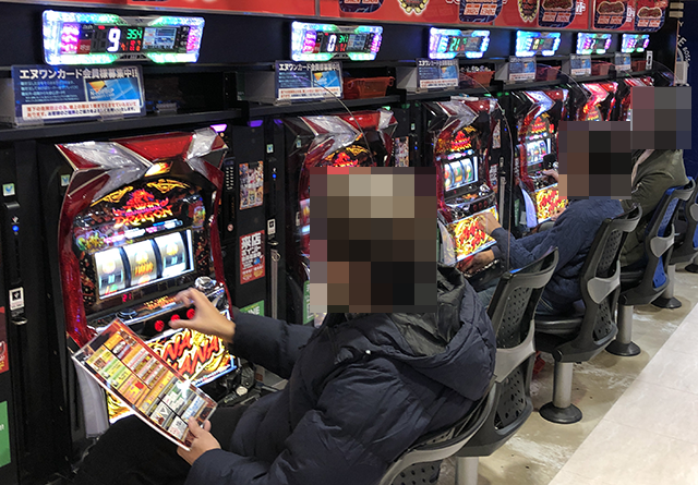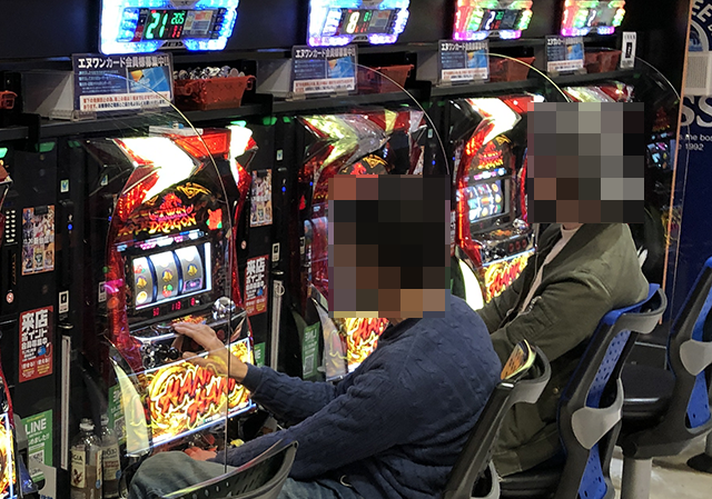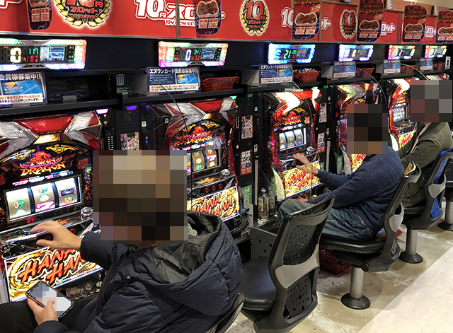 ハナハナシリーズをはじめ、4機種の沖スロが設置されているホールだ。