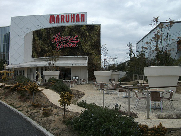 緑に囲まれた外観が印象的。店内が喫煙と禁煙で大きくエリア分けされていることも特徴的なホールだ。