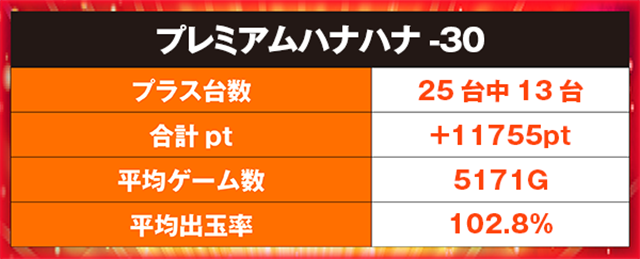 62回を記録した「プレミアムハナハナ-30」も3位に入り、独占を阻止した。