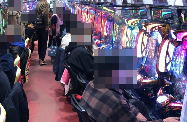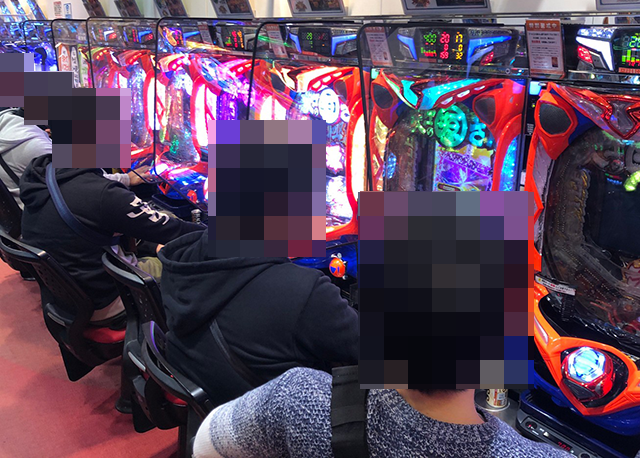 確認時は半数以上の台が埋まっており、プレイヤーの年齢層は幅広い。