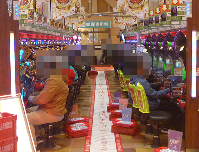 パチンコだけではなく、パチスロにも華やかな光景が広がっていた「パチンコ玉三郎糸魚川店」。店内のあちこちで、有意義な時間を過ごしているといった姿に出会えた。