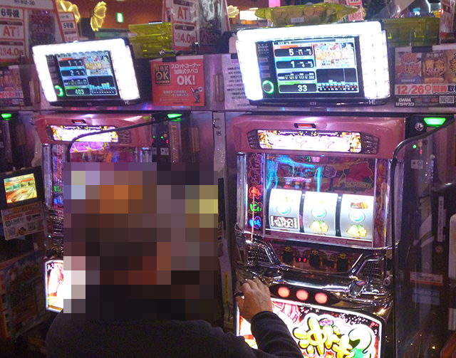 14時過ぎの時点で、5箱の持ち玉で遊技をおこなっている姿があった。