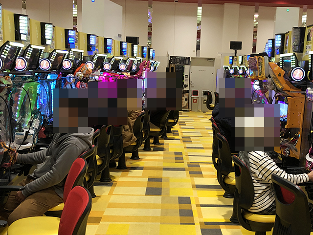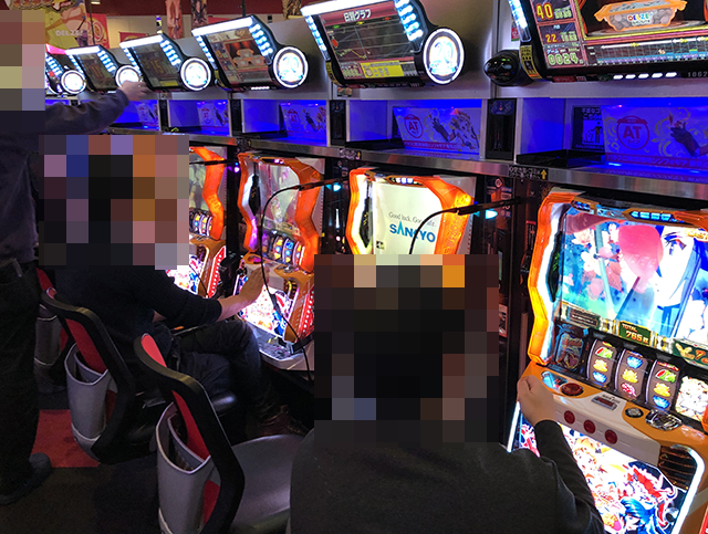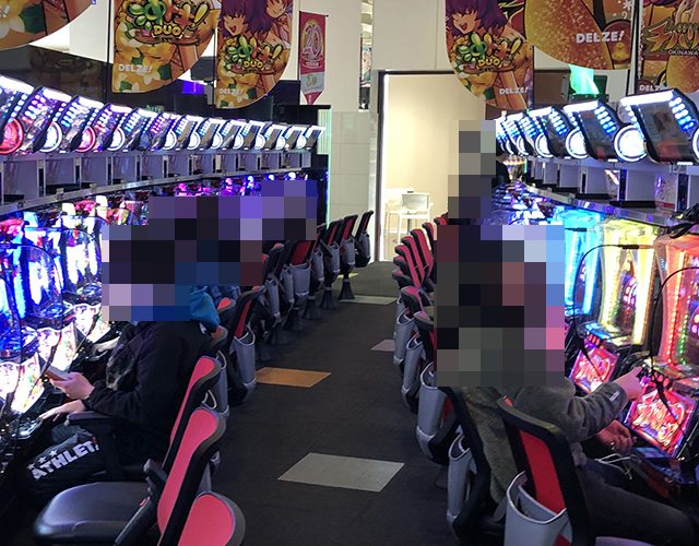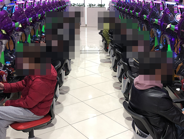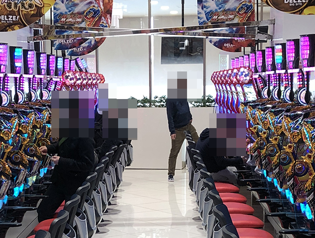 明るい表情で遊技をおこなう姿が多く、華やかな雰囲気が感じられた「デルゼビッグサイト黒埼店」。シマをまわっているだけでも楽しい気分を味わえた。