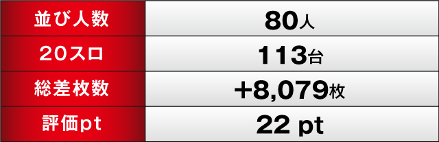パチスロ全体では、ピックアップ機種以外も活躍しており、トータルの差枚数で+8,079枚を記録。デビュー戦を見事な勝利で飾ることに成功。また一店舗、期待のホールが仲間入りしたのであった。