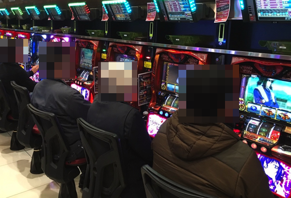 「バジリスク〜甲賀忍法帖〜絆」や「沖ドキ!」、「沖ドキ!トロピカル」も人気となっており、楽しそうな表情をみせるプレイヤーが多数。