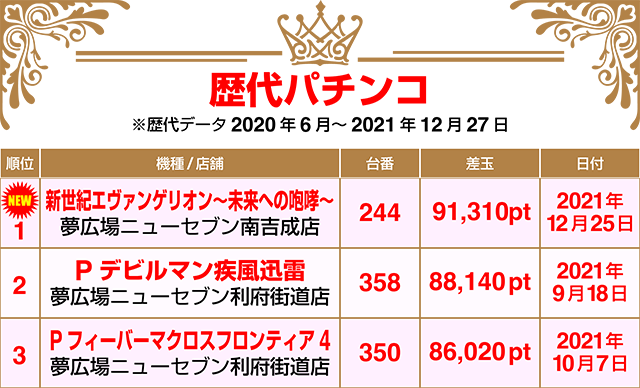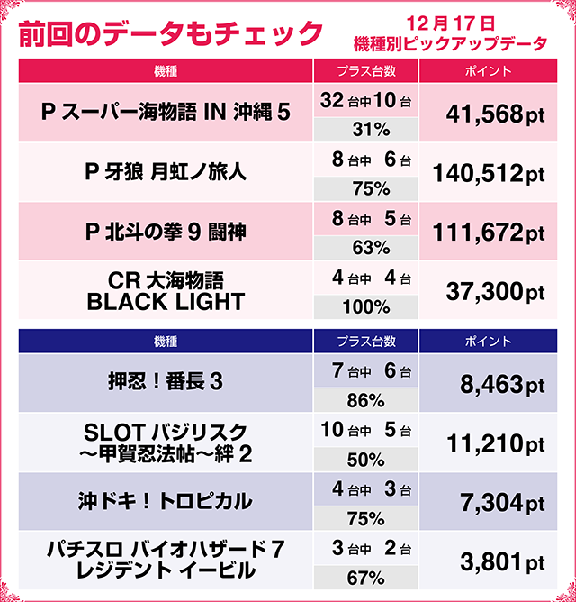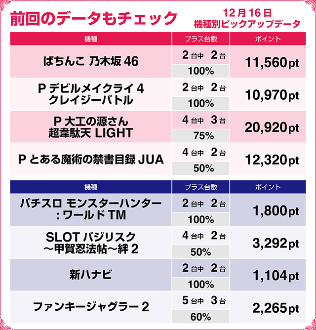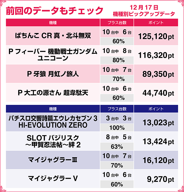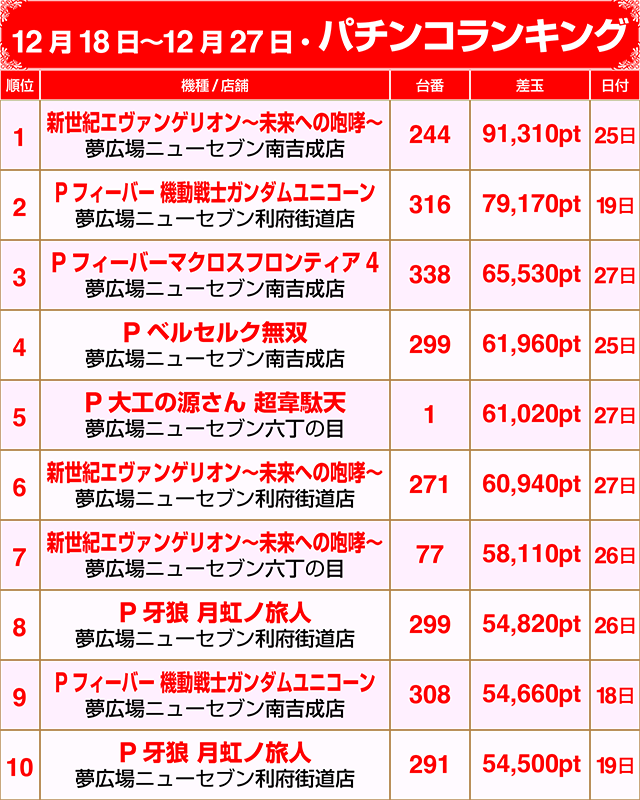 【パチンコ12月18~12月27日ランキング】