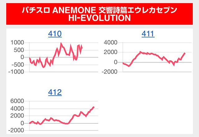前回に引き続き『パチスロANEMONE 交響詩篇エウレカセブン HIーEVOLUTION』も4台中3台がプラス。