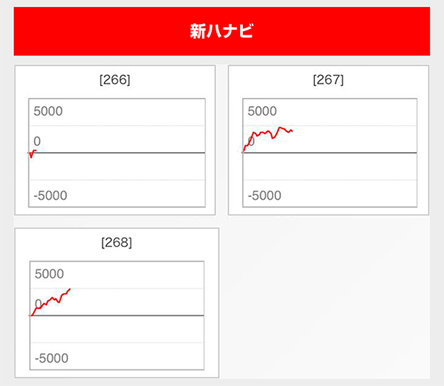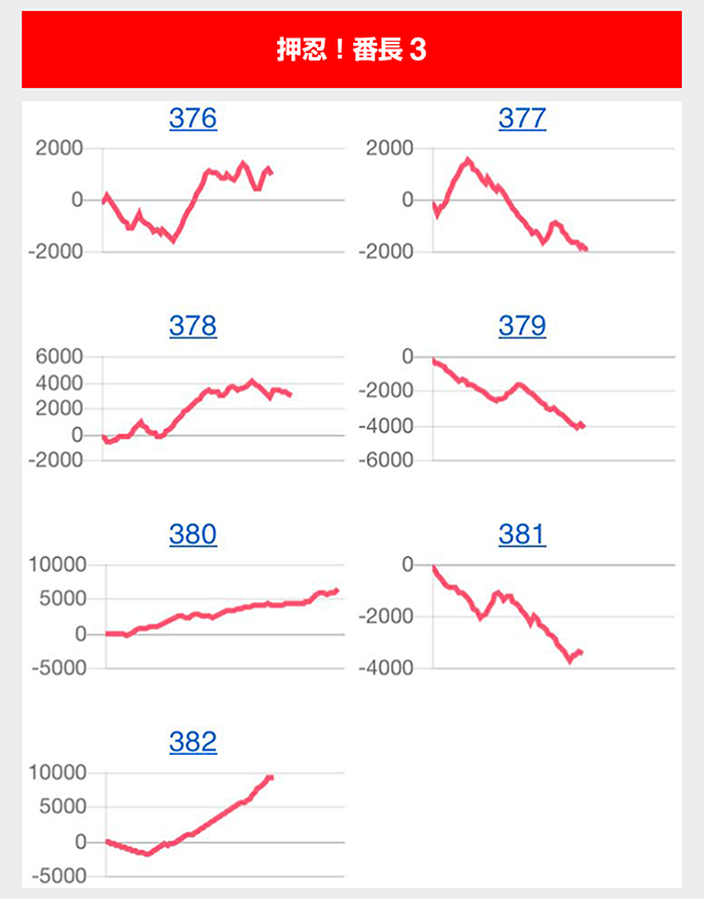 『押忍!番長3』は2台の差枚数が+5,000ptを超えるなど、半数のスランプグラフが右肩上がり。