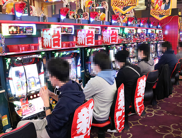 開店すると、並ばれていた80人弱のプレイヤー各々がお目当ての台に向かい、さっそうとレバーを叩き始める。
