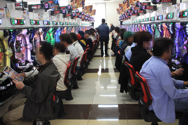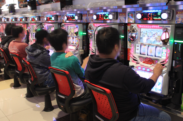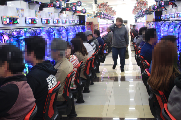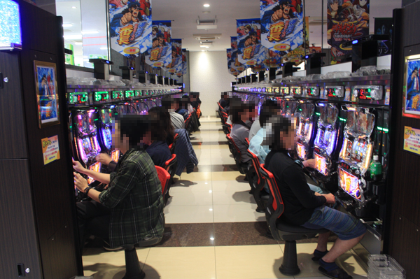 パチスロコーナーでは大勢のプレイヤーが「押忍!サラリーマン番長」を遊技しており、パチスロのなかでもっとも人気を集めていた。