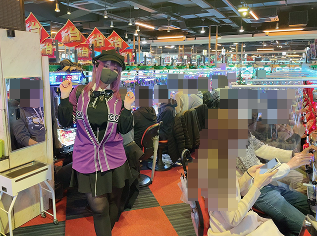楽しげなプレイヤーがならび、にぎわっているホール内でもとくに目立っていました♪