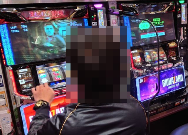 さまざまな機種がにぎわっているパチスロコーナーで、ひときわ存在感を放っていたのが「パチスロ バイオハザード7 レジデント イービル」だ。
