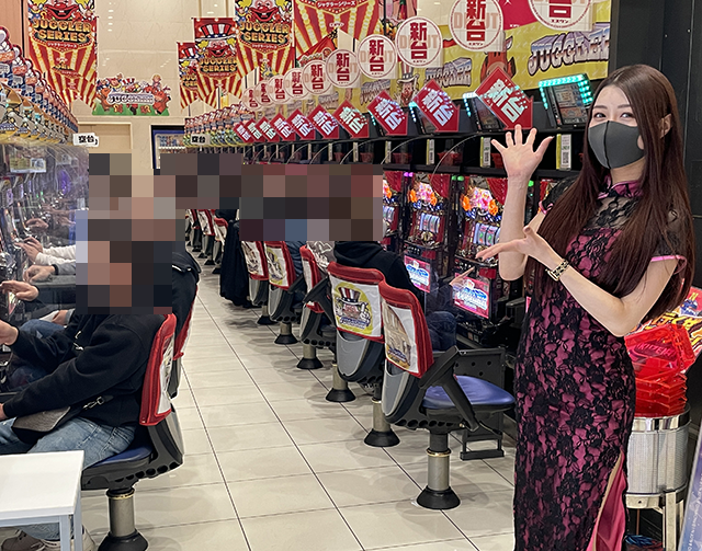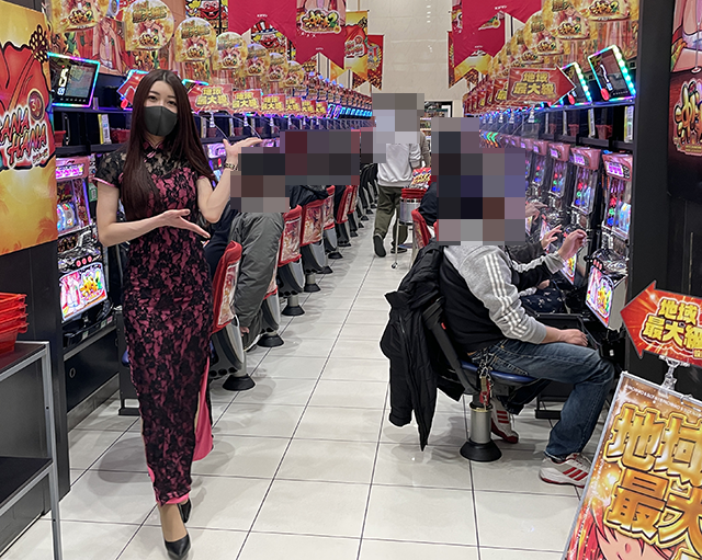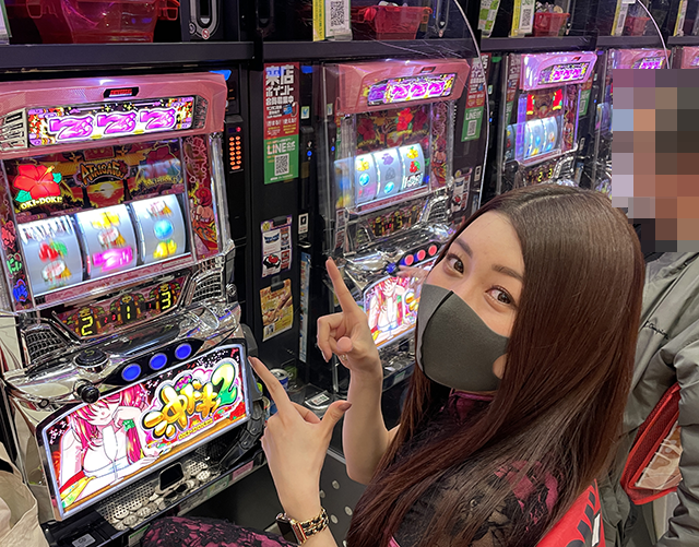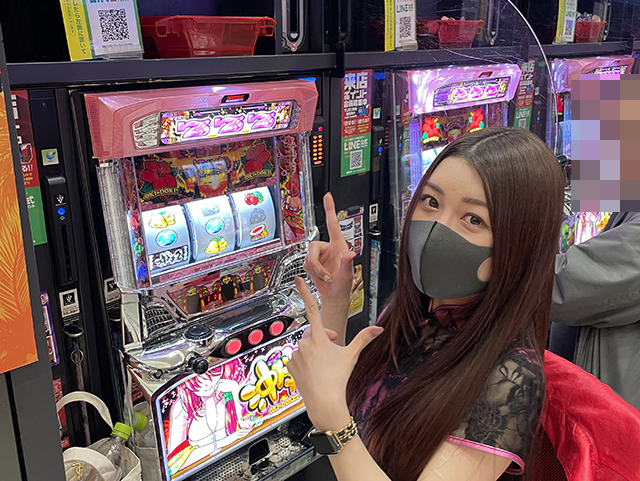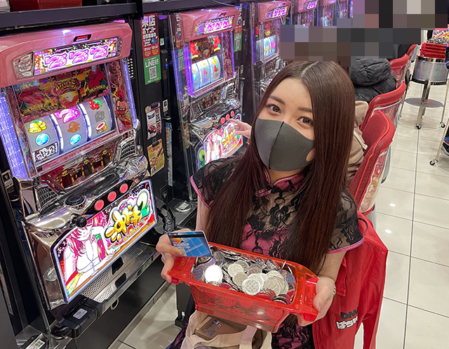 それでは、エリカちゃんもパチスロで実戦開始!!