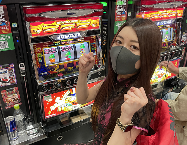 最後に、また「アイムジャグラーEX」に移動して、楽しそうに実戦をしていました~。