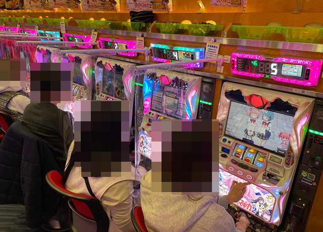 「SLOT魔法少女まどか☆マギカ2」も満席となっていて、多くのプレイヤーが笑顔をみせていました☆