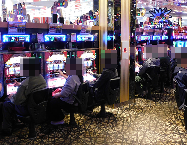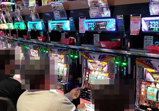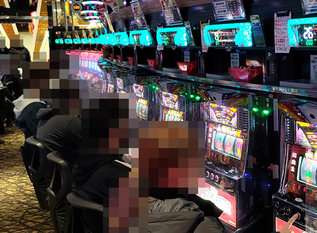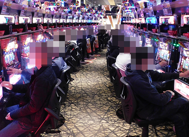 1000台以上の遊技台が設置されているホールで、たくさんのプレイヤーが遊技を楽しんでいた。