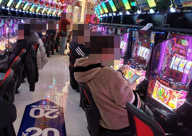 設置台数は34台とホールでもっとも多く、取材時の稼働率は80%オーバー。