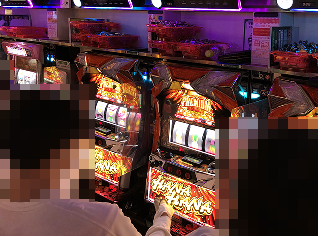 14時半ごろのハナハナシリーズは、約7割が稼働するほどに人気を集めていた。